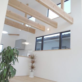 限られた敷地の中で最大限に光を取り入れられる工夫を施し、家族団らんできる2Fリビングは朝陽の差し込む明るいスペースです。